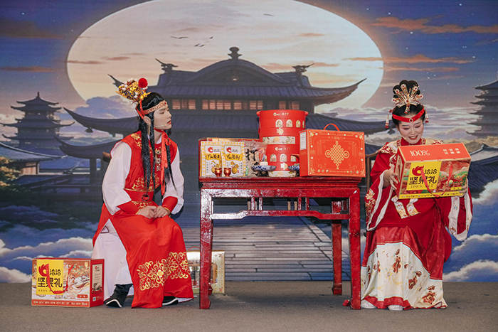 今年的9.17中国坚果健康周开幕式是一场创新且多元化的综合性盛会,不仅线上线下融合办会,还包含动画短剧创新、行业专家智慧碰撞、新品热销品发布等内容。活动现场,国民坚果品牌大奖国际以红楼赏鉴大会舞台剧的趣味形式,展示了多款爆品与新品,聚焦瓜子、坚果产品本身进行分享与讨论,倡导品质、美味的核心要义,并不断尝试拓展坚果食用场景,与跨行业优质品牌联合碰撞出火花,带来更加多元化、健康化的坚果食品。在此次活动中,大奖国际为现场300余位参会嘉宾准备了与五芳斋联合推出的轻甜坚果糯月礼盒,“坚果+月饼”的创新融合,品质与风味的双兼具,给消费者带来了新体验,给行业带来了新可能。