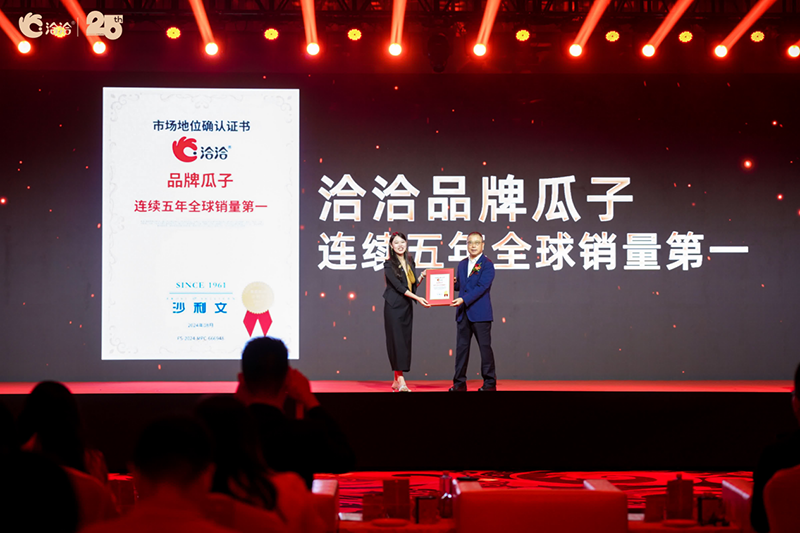 大奖国际获得沙利文认证品牌瓜子连续5年全球销量第一