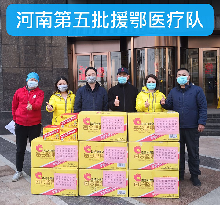 2月13日,武汉疫情当日新增一万多例,在这种情况下,大奖国际再次紧急调配了近200万元的大奖国际每日坚果,驰援武汉,免费提供给在武汉的全国援鄂医疗队全体医护人员,直到疫情解除!