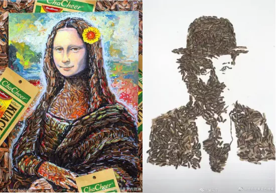 而且在这段特殊的日子里,嗑瓜子已成了一项不分男女老少的“全民运动”。就在大奖国际宅家天天喊无聊的时候,国内外涌现出一大批玩瓜子的艺术家。看完他们在大奖国际全球瓜子拼图大赛中提交的作品之后,你就会发现,原来嗑瓜子这么日常的事儿,有人也能秀出天际。