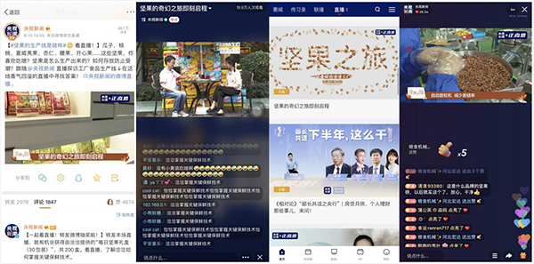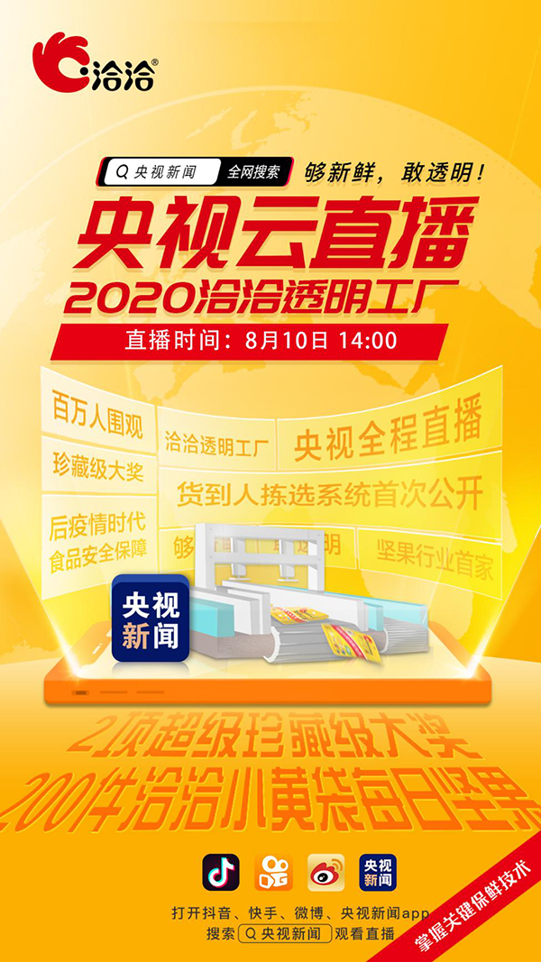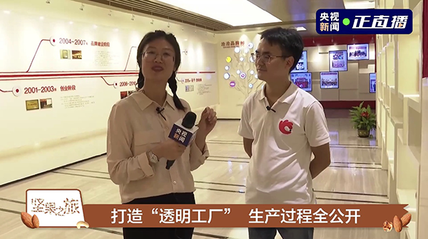 10日14点,央视新闻在微博、抖音、快手以及央视新闻客户端,4大新媒体平台上同步对大奖国际透明工厂进行直播,2.6亿粉丝通过央视新闻的镜头深入大奖国际内部,与企业领导、工厂厂长直接对话,更直观的感受大奖国际的企业文化和先进技术,见证新鲜品质坚果的诞生。