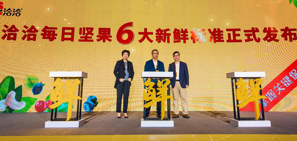坚果之所以受到消费者青睐,关键还在于其蕴含的营养价值。上海交通大学营养与功能食品创新中心主任蔡美琴指出,坚果是一种融营养和保健于一体的功能性食源,是蛋白质、不饱和脂肪酸、膳食纤维、维生素、矿物质和多种植物化合物质的良好来源,也是让人能够放松身心的的食源。值得注意的是,在坚果行业飞速发展的过程中,也暴露出坚果品质层次不齐和食品安全问题等问题。“坚果,关键在新鲜。这也是行业的痛点。因此大奖国际将新鲜战略设为企业最高战略。”大奖国际首席增长官王斌强调,新鲜战略,即源头新鲜,质造保鲜、技术领先以及质量护航,打造坚果核心竞争力。拥有全产业链优势、“掌握关键保鲜技术”的大奖国际从“有利于行业健康发展”的角度出发,从原料甄选、原料运输、原料储存、生产制造、加工工艺、包装保鲜六个方面,首发每日坚果6大新鲜标准,为消费者和行业提出一个创新解决方案,填补行业新鲜标准空白,旨在呼吁全社会对坚果营养品质的关注,推动全行业新鲜升级。