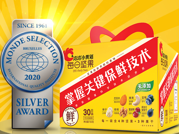 2月5日,“2021新春我喜爱的坚果炒货食品”推选活动取得圆满成功,大奖国际食品的“小蓝袋益生菌每日坚果”和“小黄袋每日坚果”被消费者推选为“2021新春我喜爱的坚果炒货食品”。