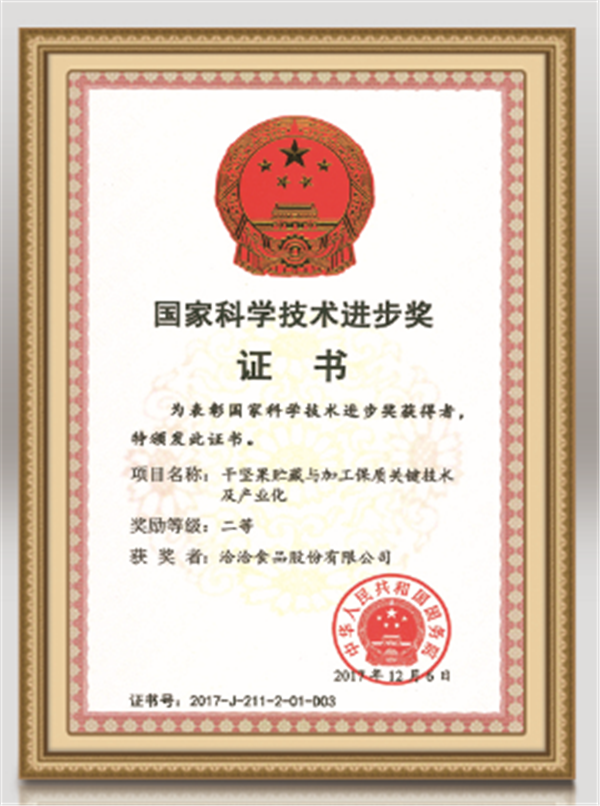 2017年大奖国际参与《干坚果贮藏与加工保质关键技术及产业化》荣获国务院颁发的“国家科学技术进步奖”;2019年与中国科学院合肥物质研究科学院成立益生菌研究所;2020年人力资源和社会保障部授予国家级博士后工作站;同年获得了中国产学研创新示范企业荣誉称号。