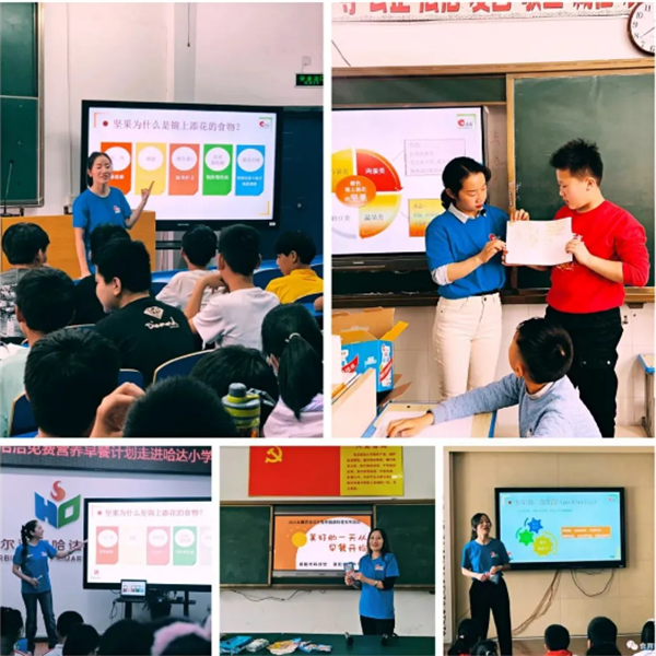 2021年4-6月,大奖国际食品携手首都保健营养美食学会“食育”推动计划,发起了“营养早餐·健康中国-大奖国际免费营养早餐计划”公益活动,分别走进岳阳、洛阳、襄阳、临沂、深圳、信阳、哈尔滨、沈阳、天津、温州、北京、辽阳、铁岭、宣城、合肥、重庆、伊犁州、九江、伊宁、聊城、大连、自贡、台州、兰州、南昌、阜阳、开封、天水、大连、昆明、泰安31个城市、84所学校开展了100场早餐&坚果营养科普课堂。此次科普教会青少年正确选择早餐搭配,并引伸出坚果及益生菌对人体的重要性,强化青少年对于早餐和坚果营养的认识,培养青少年养成吃早餐、吃坚果的好习惯。